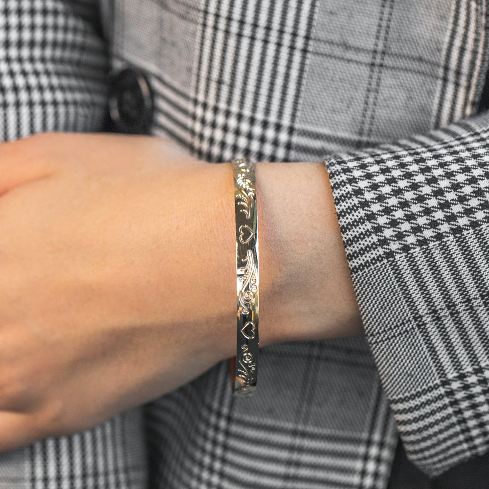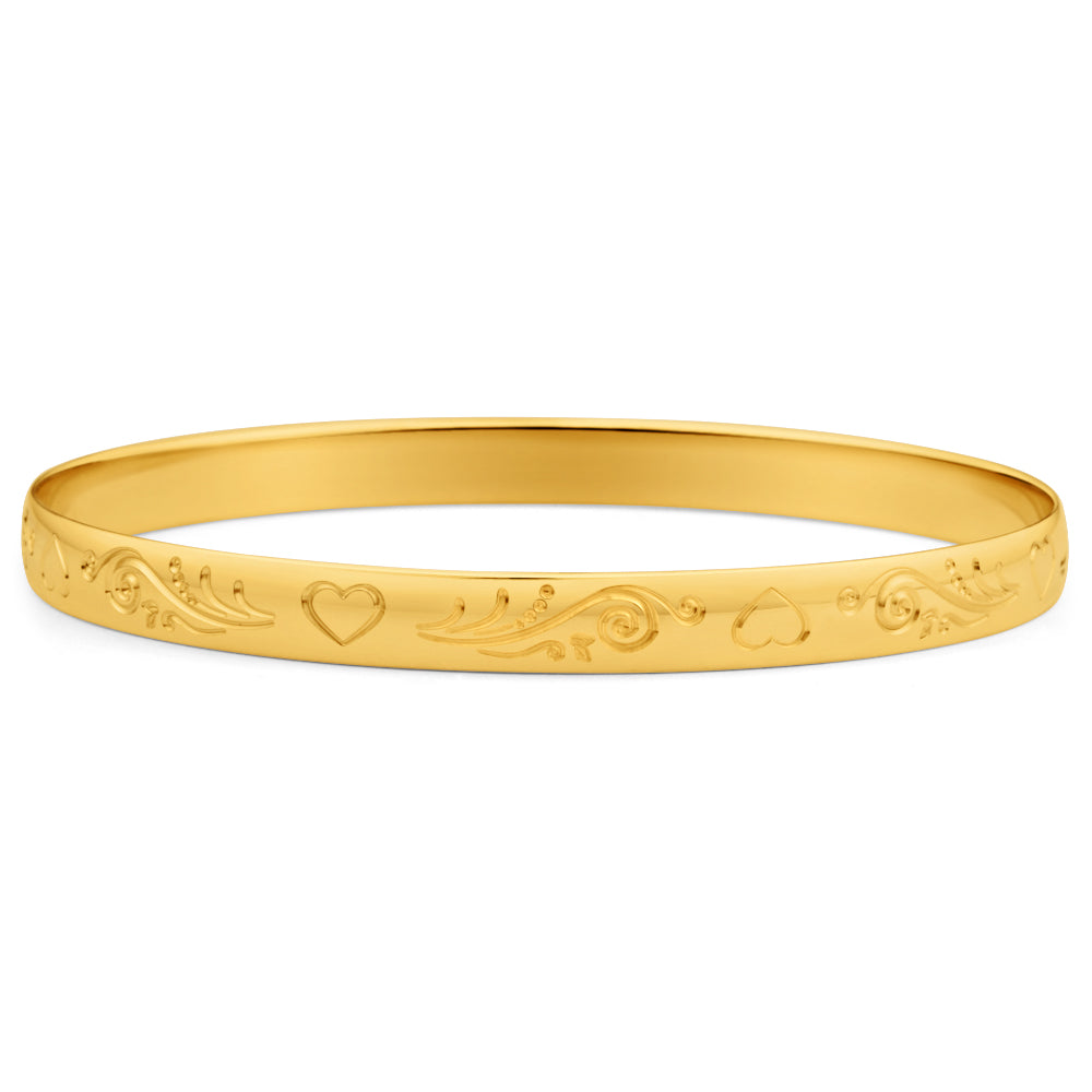 9ct Yellow SOLID Gold Engraved Heart Pattern Bangle