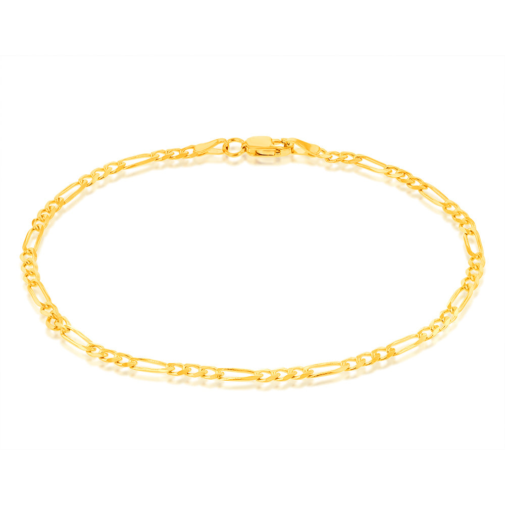 9ct Yellow Solid Gold Fancy 70 Gauge 19cm Figaro 1:3 Bracelet