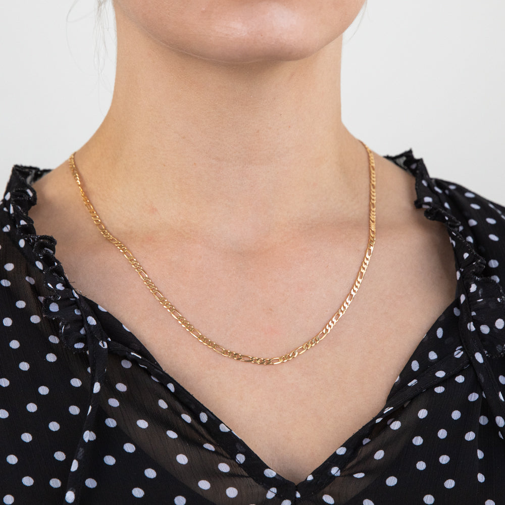 This 9ct yellow gold Figaro chain brings classic style to your everyday look. The 1:3 link pattern creates a neat, textured design that sits beautifully whether you're wearing it solo or layering up. Solid gold means this chain is built to last, perfect for adding a touch of polish to work or weekend outfits.
