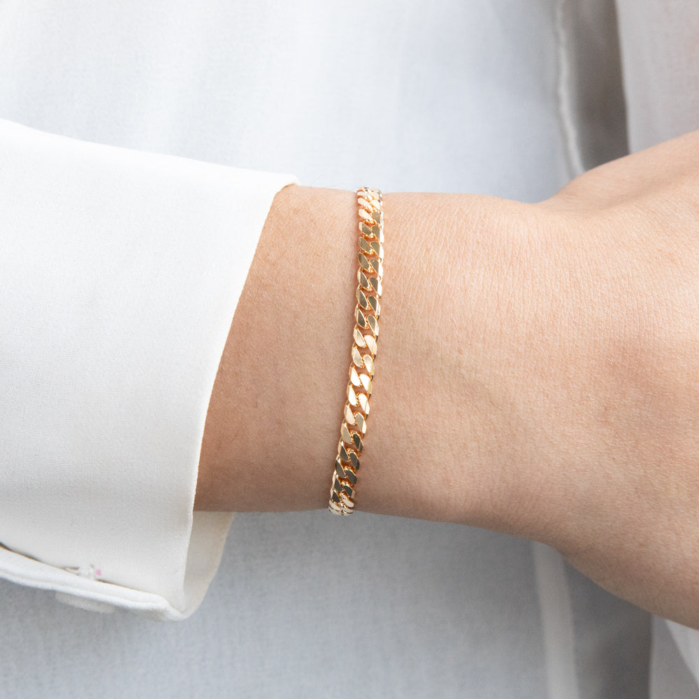 9ct Yellow Solid Gold Flat Bevelled Curb 21cm Bracelet 120gauge