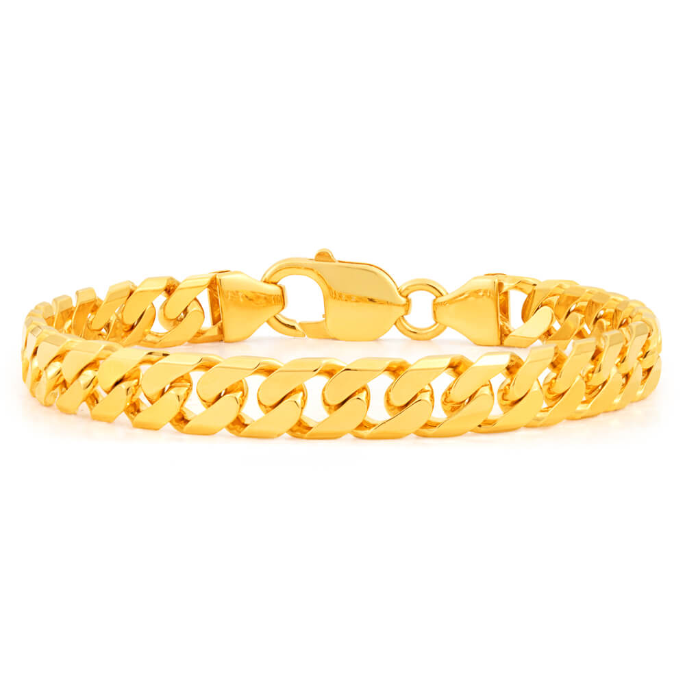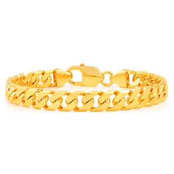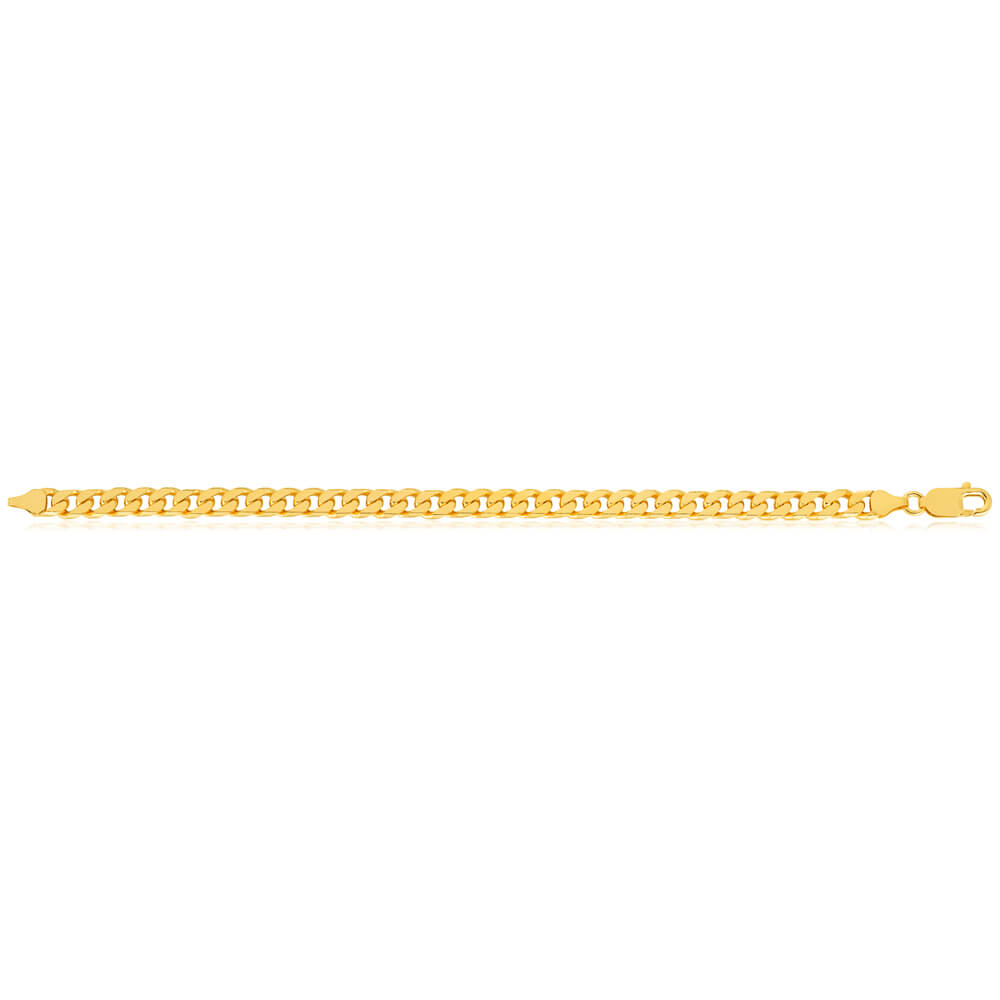 9ct Yellow Solid Gold Heavy Curb Bevelled 21cm Bracelet 200 Gauge
