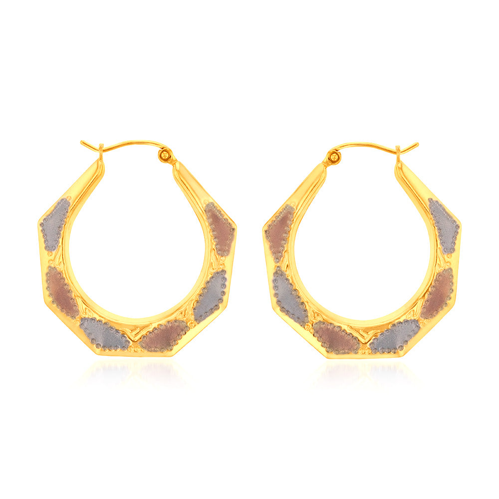 9ct Yellow White And Rose Gold Silverfilled Tricolour 30mm Hoop Earring
