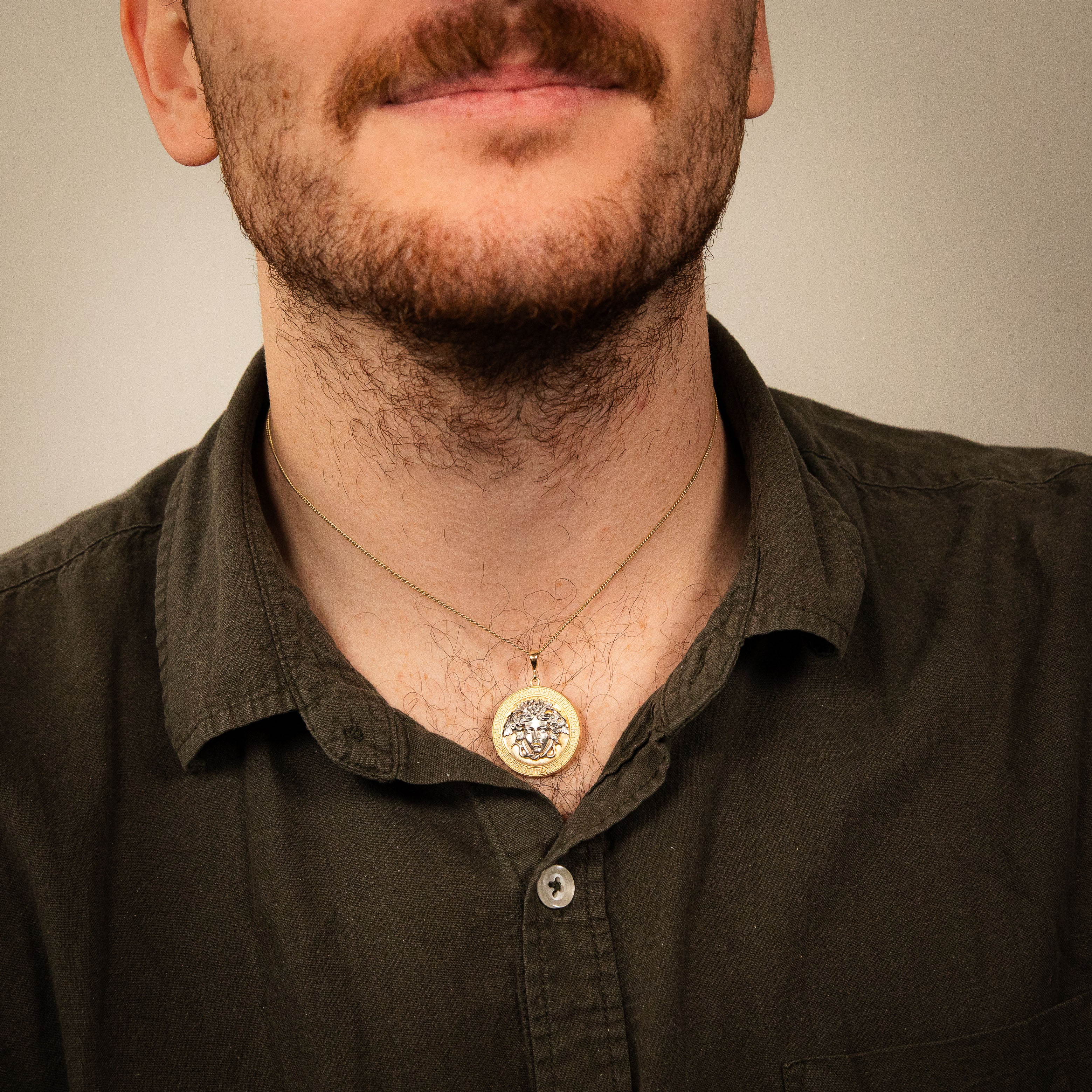9ct Yellow & White Gold Medusa Greek Key Round Diamond Cut Pendant