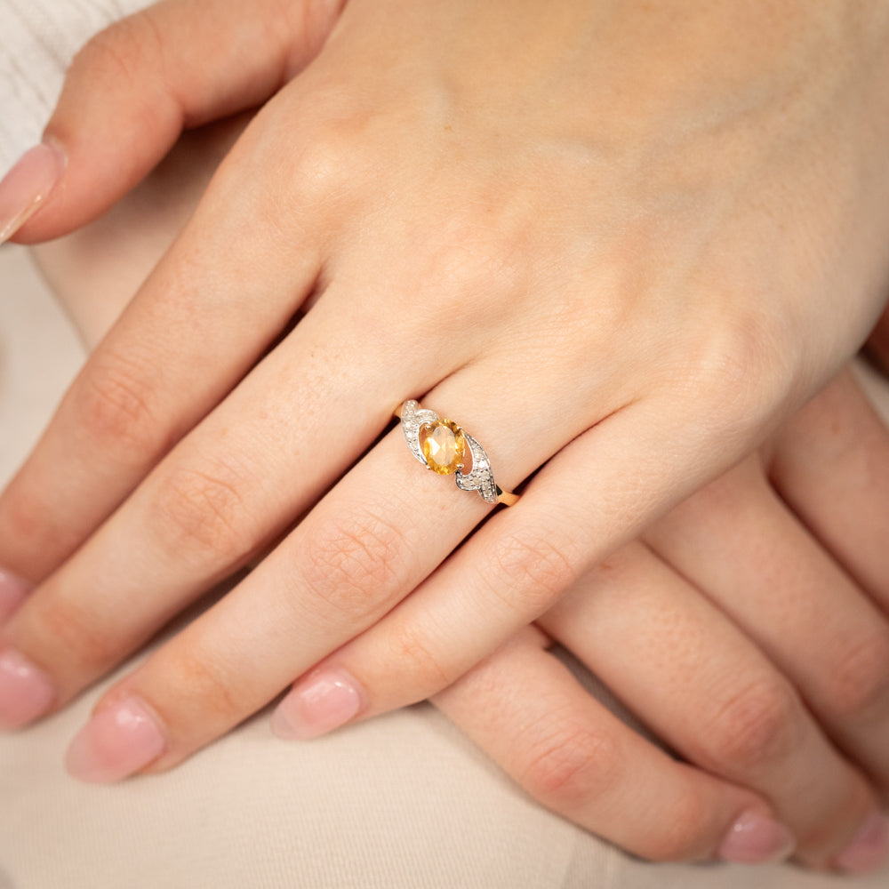 9ct Yellow & White Gold Two Tone Natural Citrine And Diamond Ring