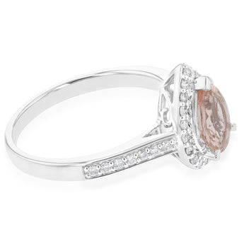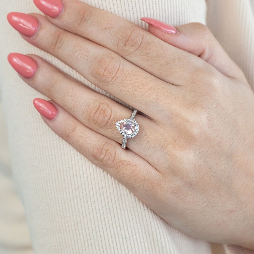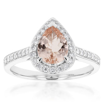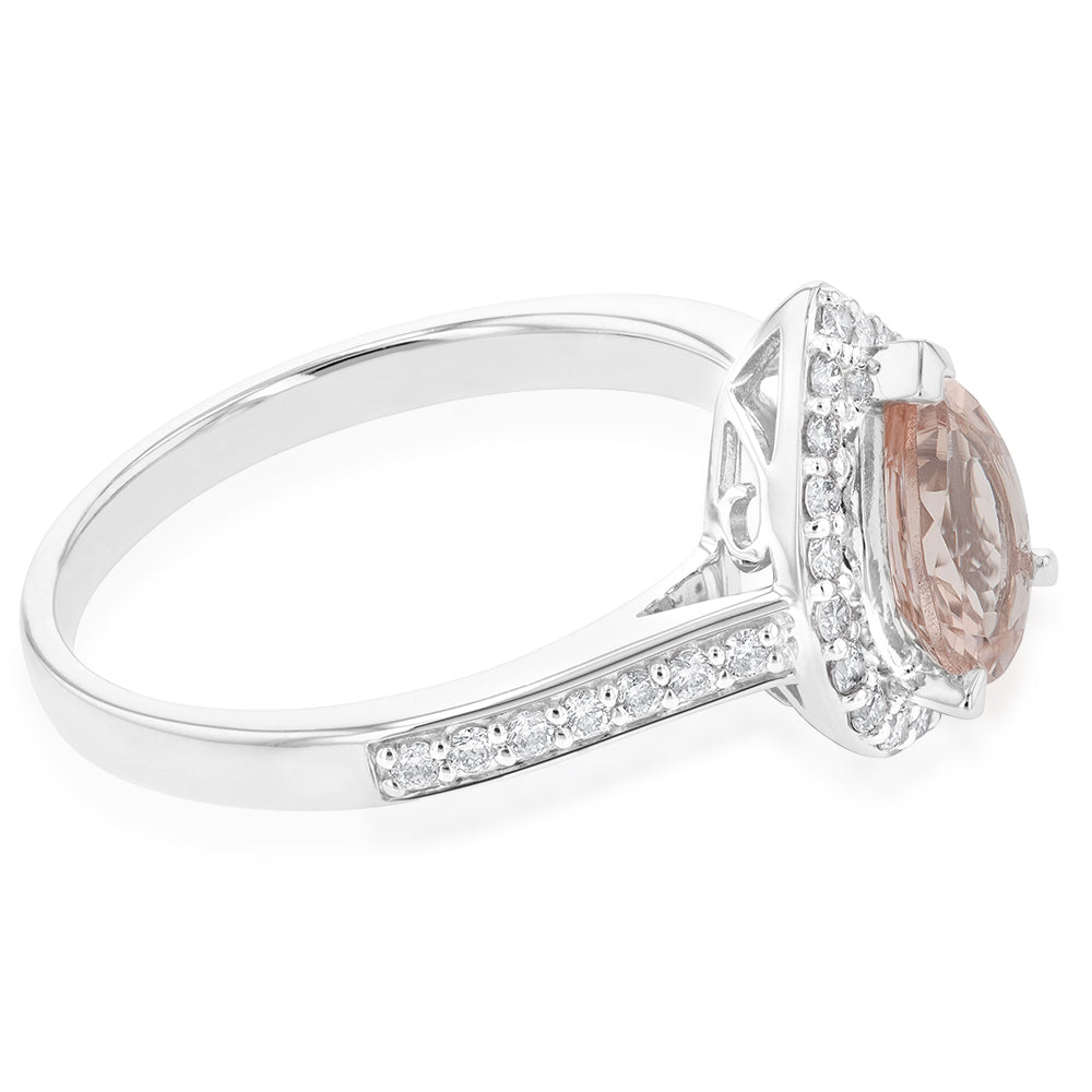 9W White Gold 1.00ct Morganite Pear and 1/4ct Diamond Ring