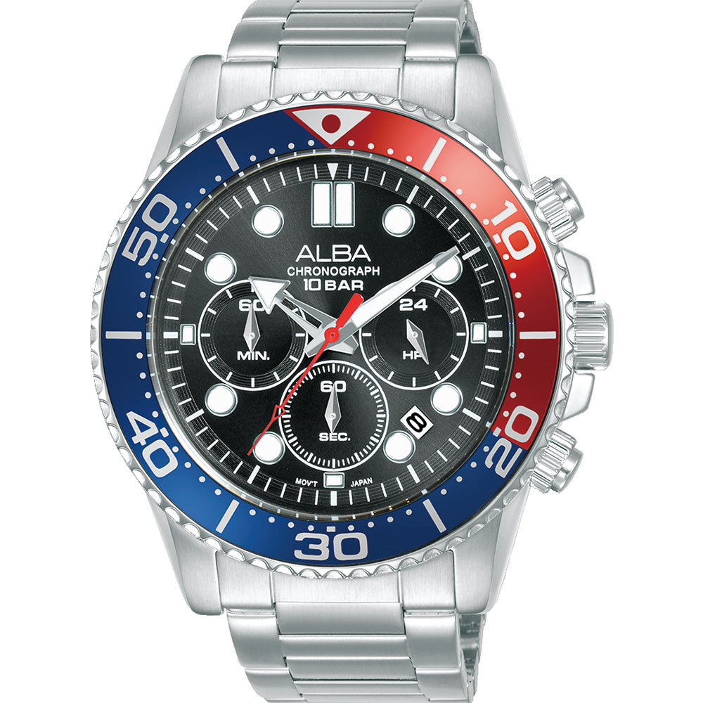 Equipped with a pull-out crown for easy adjustments, this watch includes a practical date display for enhanced functionality. A mineral crystal protects the dial from scratches while maintaining clarity and durability. With water resistance up to 100 meters, it is designed to withstand water pressure, making it ideal for swimming and water sports. The Alba Active AT3J35X Chronograph is a versatile timepiece that combines performance with a bold design, perfect for those who seek both functionality and style in their watch.