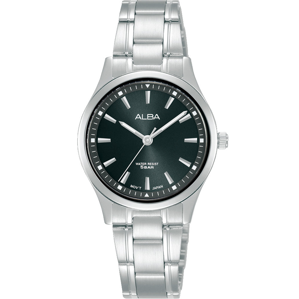 The Alba ARX029X Stainless Steel watch is the perfect choice for someone that is going for a timeless and elegant look. The shiny silver case and three-link bracelet contrast beautifully against the dark dial. It is water resistant up to 50 metres and features an easily readable watch face. This classic design can be matched with any outfit and any occasion.
