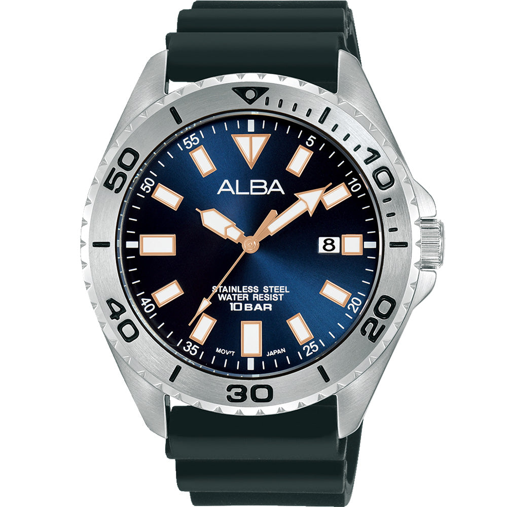 Equipped with a screw-down crown for added security and a date display for convenience, this watch is designed for year-round use. A mineral crystal protects the dial from scratches, ensuring lasting clarity. With water resistance up to 100 meters, the Alba AS9Q47X is suitable for swimming and water sports, making it a versatile companion for both work and leisure activities.