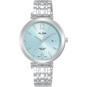 Featuring a pull-out crown for easy adjustment, it includes a date display for added functionality. Adorned with 6 crystals around the dial, it adds a subtle hint of sparkle while maintaining a minimalist appeal. A mineral crystal ensures scratch resistance, ensuring clarity and durability over time. With water resistance up to 50 meters, this watch is designed to withstand splashes and brief immersion, making it versatile for various activities. The Alba Fashion AH7BW5X is a stylish choice that complements any outfit with its understated elegance and practical features.