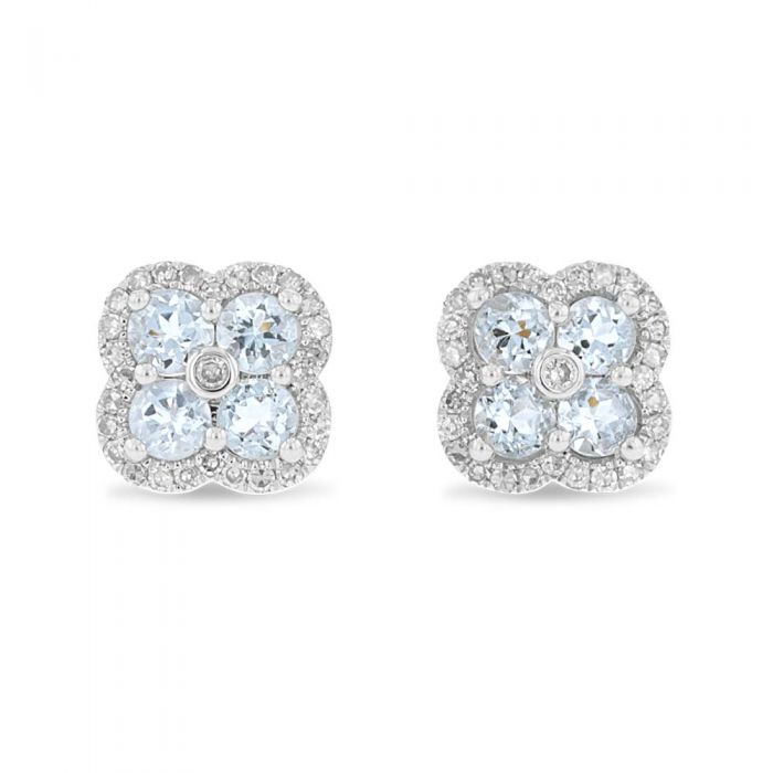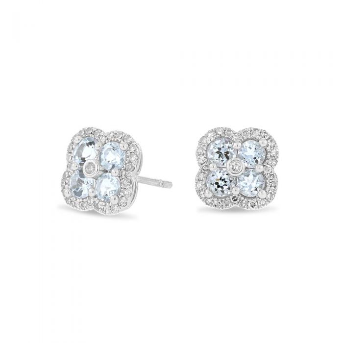 Aquamarine & 0.22ct Diamond Shamrock Stud Earrings in 9ct White Gold