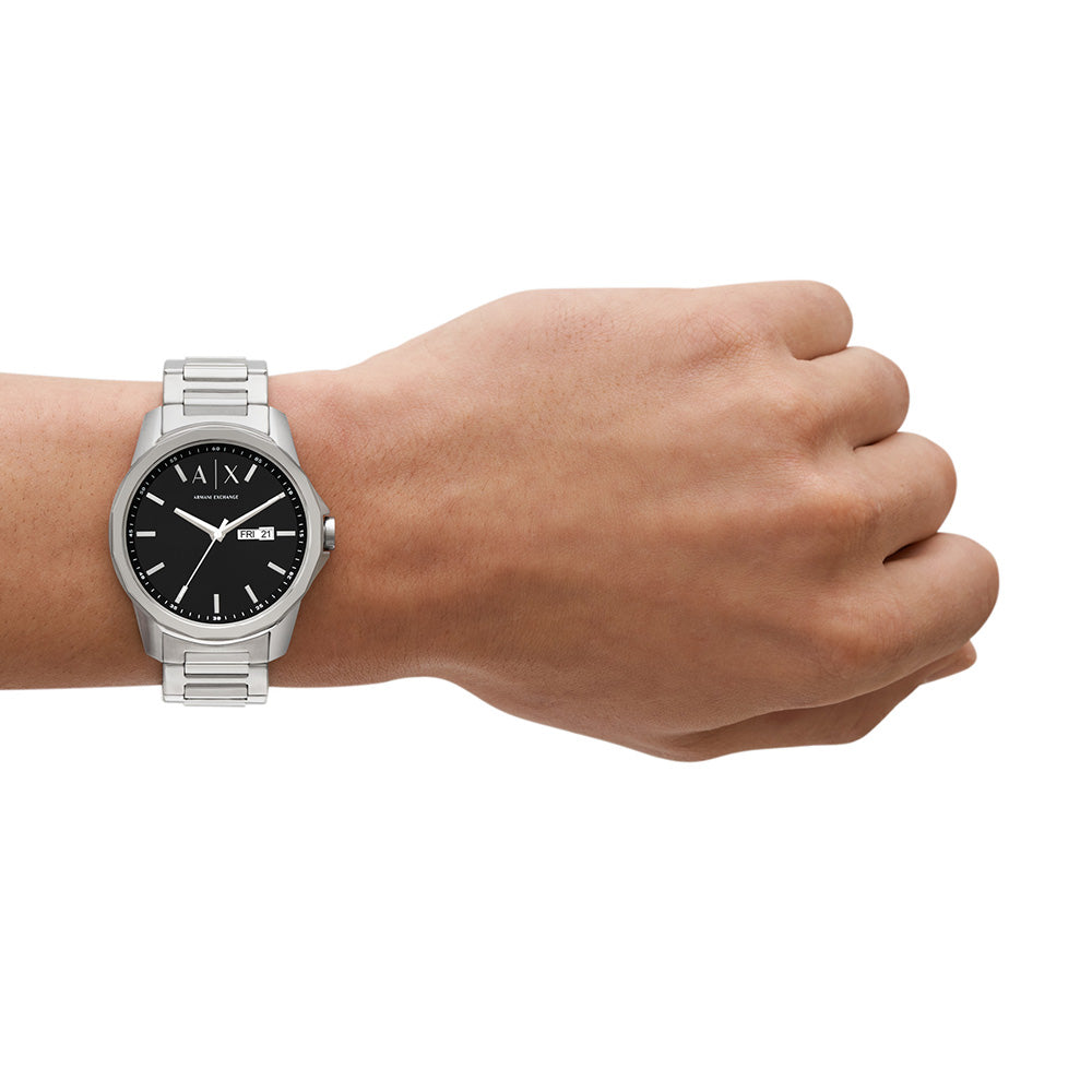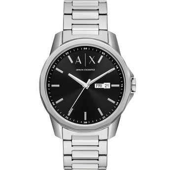 Are you ready to show how fancy you can be? The Armani Exchange AX1733 Banks Stainless Steel Mens Watch will have you looking elegant and professional. This respected mens watch with the date embedded will elevate your style to the max! With a silver stainless steel strap and black watch case, this sleek, stylish watch suits any outfit.