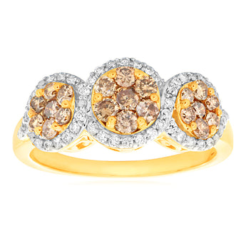 Australian Diamond 9ct Yellow Gold 1 Carat Diamond Trilogy Ring