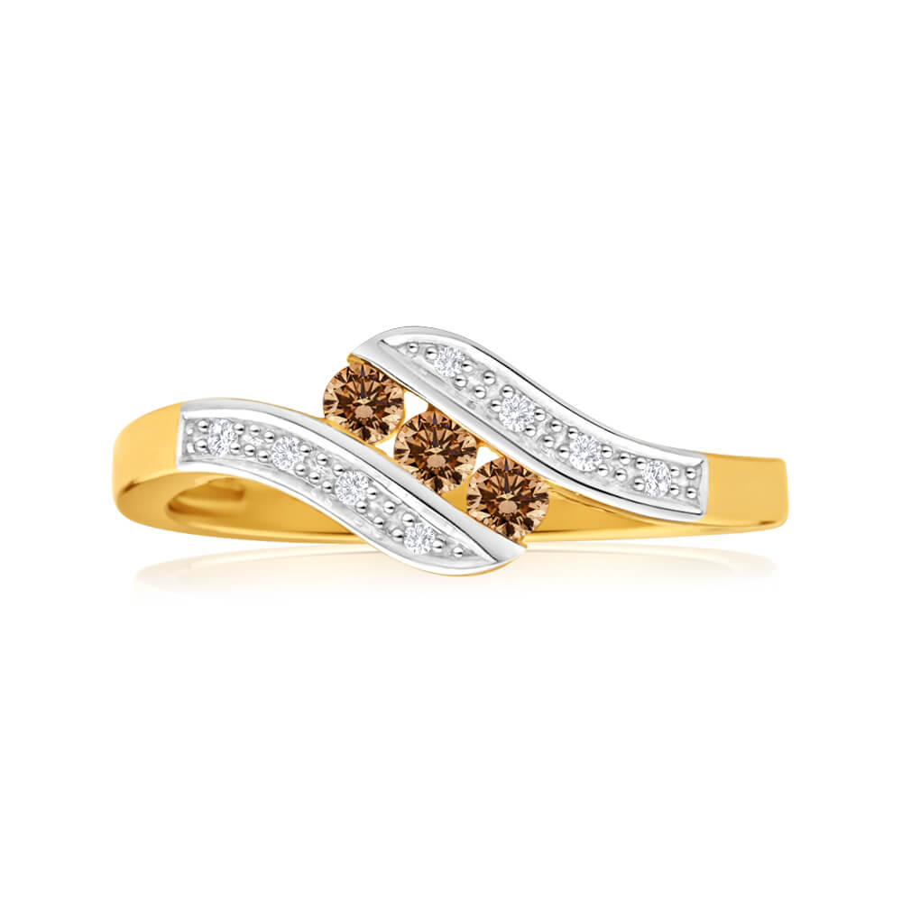Australian Diamond 9ct Yellow Gold Diamond Trilogy Ring
