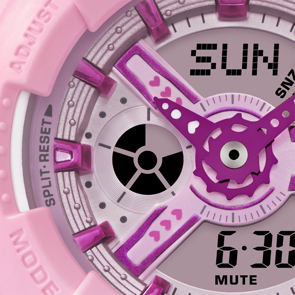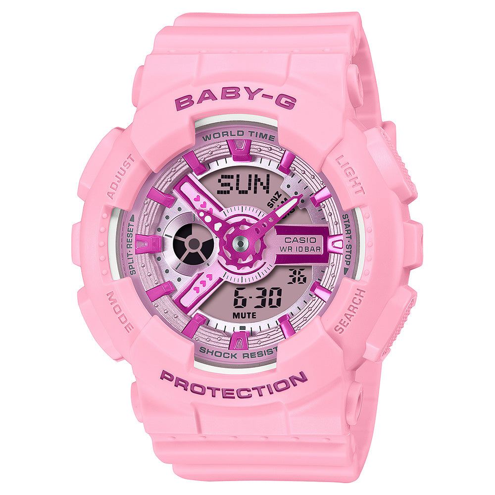 With features like world time for 29 time zones, a timer, stopwatch, LED light, full auto-calendar, and a mute function, this watch offers both practicality and fun. It’s powered by two SR726W batteries with a life of approximately two years and maintains an accuracy of ±30 seconds per month. The watch displays both analog and digital timekeeping in 12/24-hour formats, showing hour, minute, second, PM, month, date, and day.