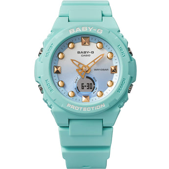 The charming pastel sea mint hue is bound to bring a smile to your face, while the gradual colour transition on the dial mirrors the mesmerizing transformation of the summer beachscape at sunset. The metallic vapor finish on the index markers evokes the iridescence of pearls and seashells, complemented by minute hands shaped like mermaid tails. Meticulously crafted, this collection embodies a spirited dive into the summer season.