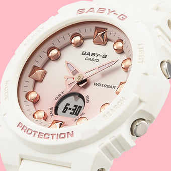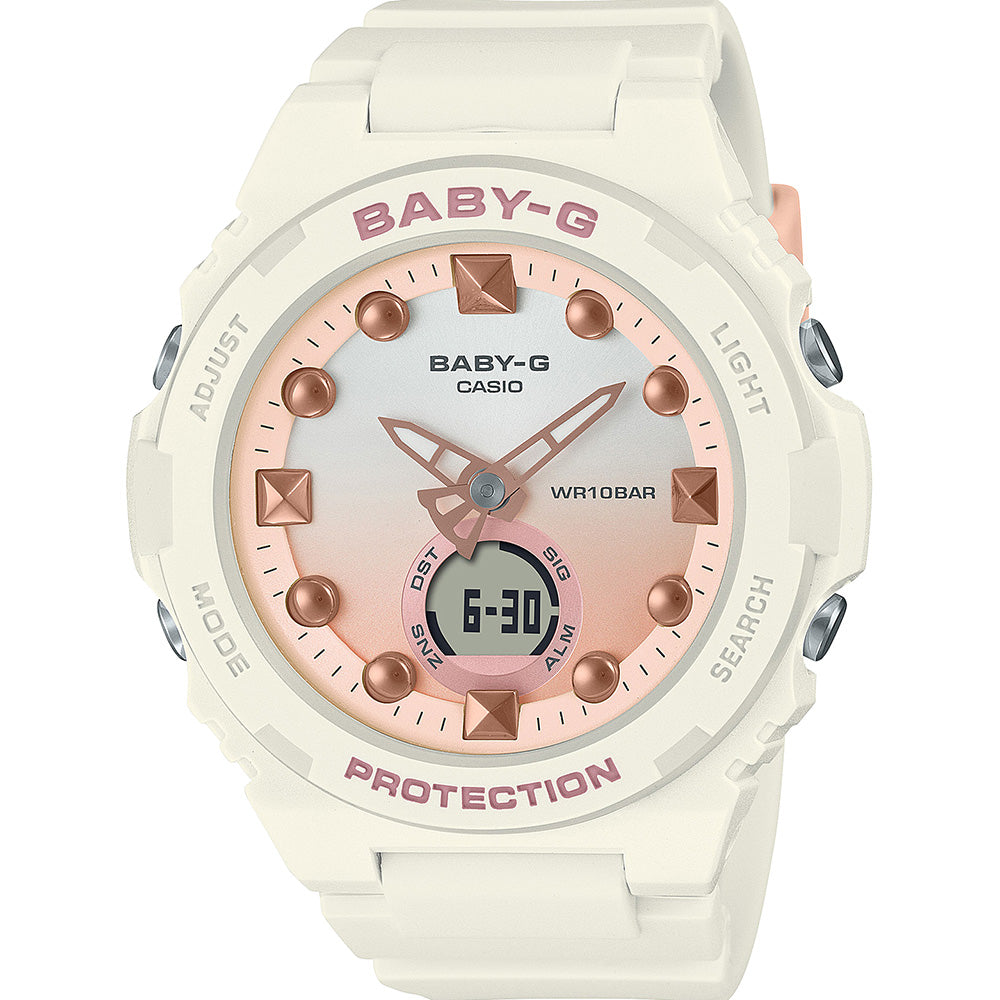 The quirkiness of this seashell white hues is sure to add a smile on your dial. The colour graduation on the dial was designed to emulate the changing on the summer beachscape as the sun sets on the horizon. The index markers have a metallic vapour disposition that emulate pearls and seashells, while the minute hands designed like a mermaid tail. Carefully thought out and designed this collection was design dive into summer with a splash.