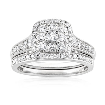 Blissful Bride 14ct White Gold 0.85 Carat Diamond Halo Bridal Set