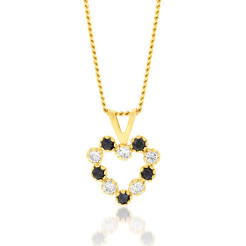 Blue and White Zirconia Heart Pendant in 9ct Yellow Gold
