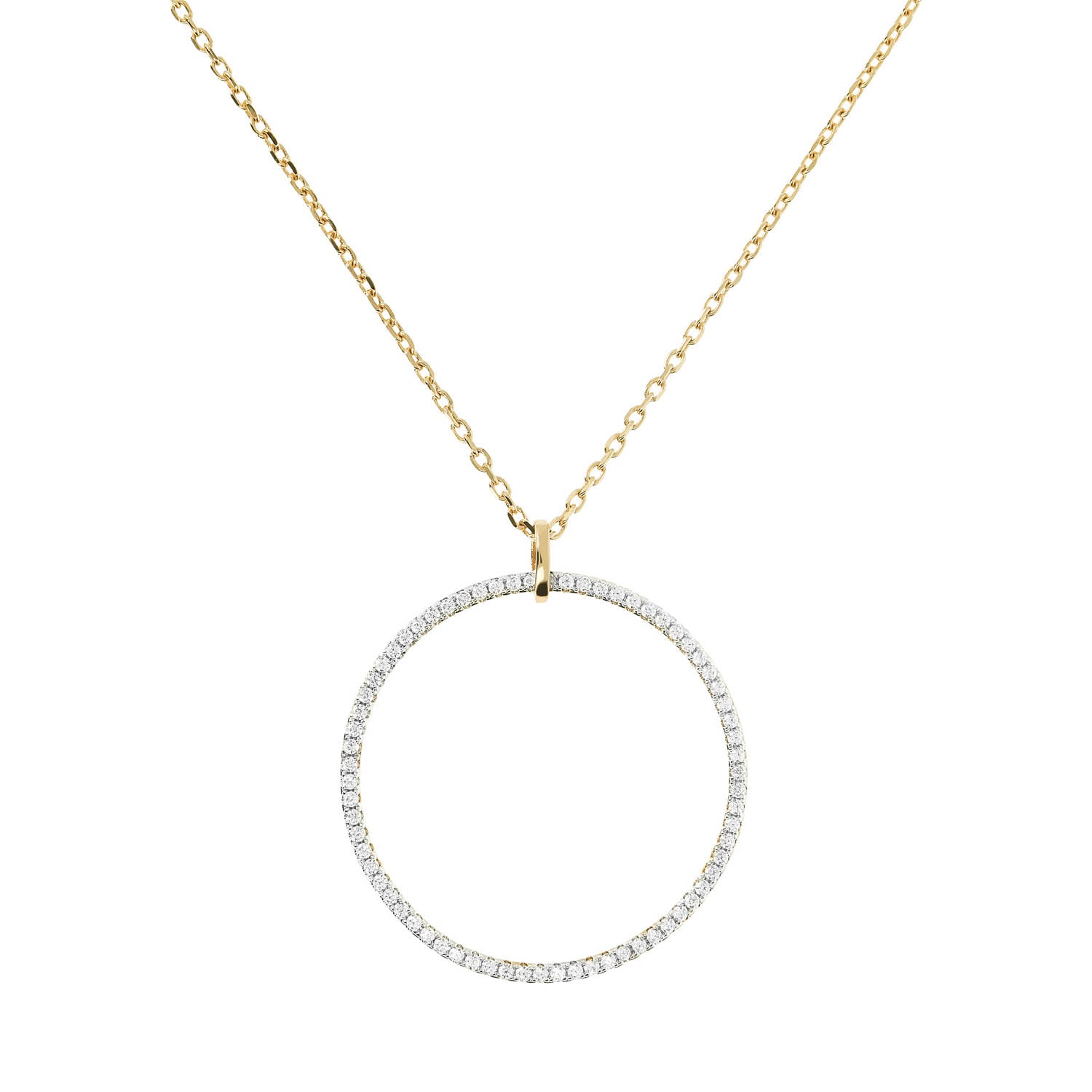 Bronzallure Gold Plated Sterling Silver CZ Large Circular Pendant On 91cm Chain