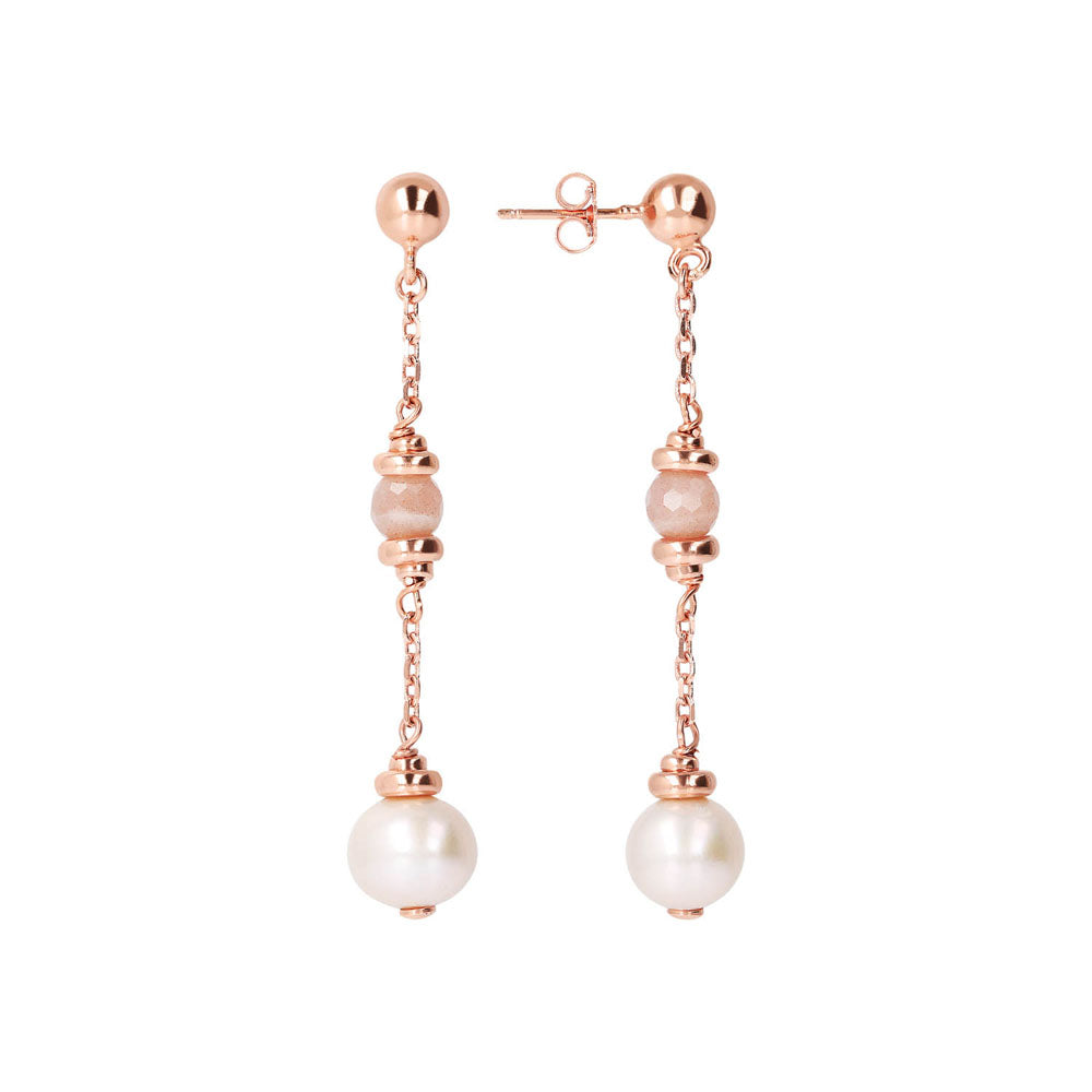 Bronzallure Rose Gold Plated Maxima Pearl & Peach Moonstone Earrings