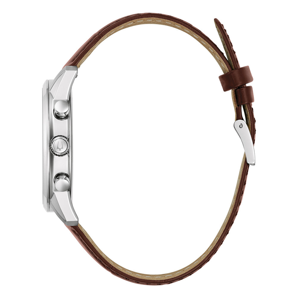 Designed for versatility and sophistication, the Bulova Classic 96B402 Chronograph features a 41mm case size and a slim 9.7mm case thickness, ensuring a comfortable fit for any occasion. While specific water resistance details are not provided, this timepiece combines practical functionality with enduring style, making it an ideal choice for those who appreciate both elegance and precision in their watch selection.