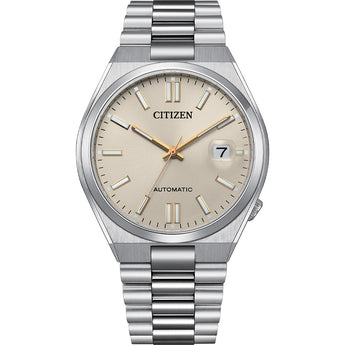 Shielded by an anti-reflective sapphire crystal, the sunray oatmeal dial of this timepiece is adorned with contrasting silver-tone accents and a practical 3 o'clock date window, marrying both style and functionality. Driven by an automatic movement and boasting water resistance up to 50 meters, the "Tsuyosa" Automatic is equipped for daily wear, whether for professional engagements or leisurely pursuits. Elevate your wristwear with this refined timepiece, ideal for every occasion.