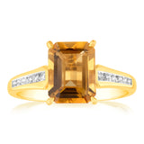 Citrine Emerald Cut and Channel Set Diamond Ring in 9ct Yellow Gold