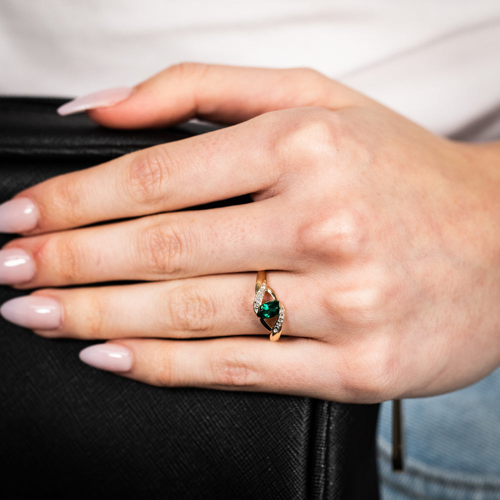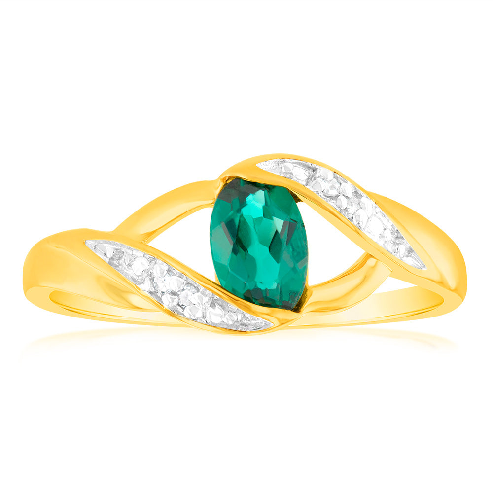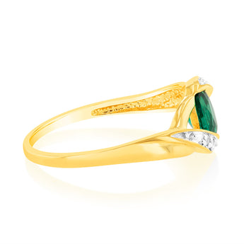 Created Emerald Cubic Zirconia Ring in 9ct Yellow Gold