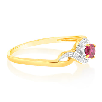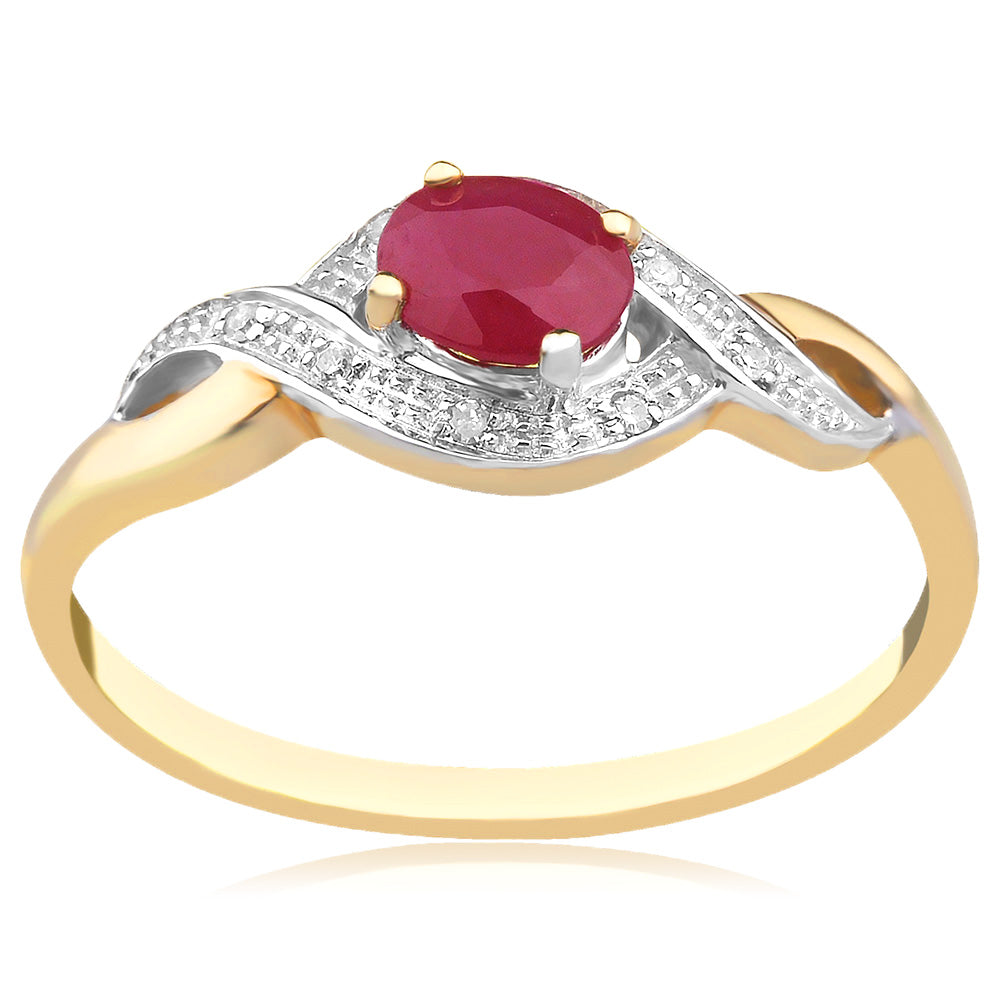 Created Oval Shape Ruby 5x4mm With Diamonds in 9ct Yellow Gold