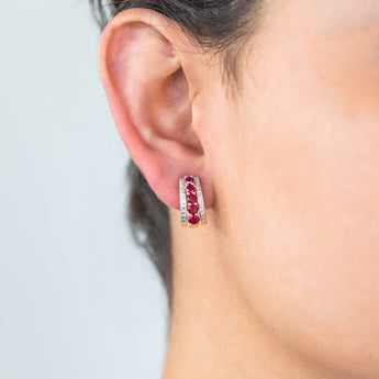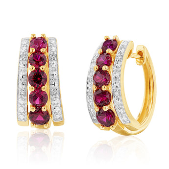 Created Ruby and Diamond Huggie Hoop Earrings in 9ct Yellow Gold