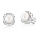 Cultured Pearl & 05Pts Diamond Stud Earrings In Sterling Silver