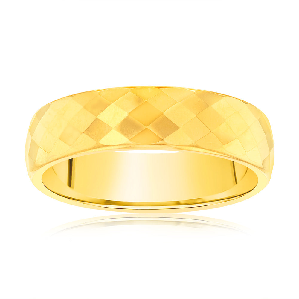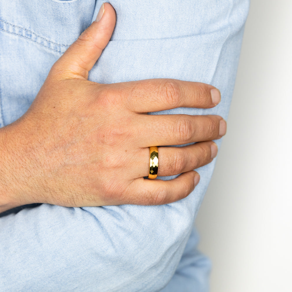 Diamond Cut Gold Polished 6mm Tungsten Ring