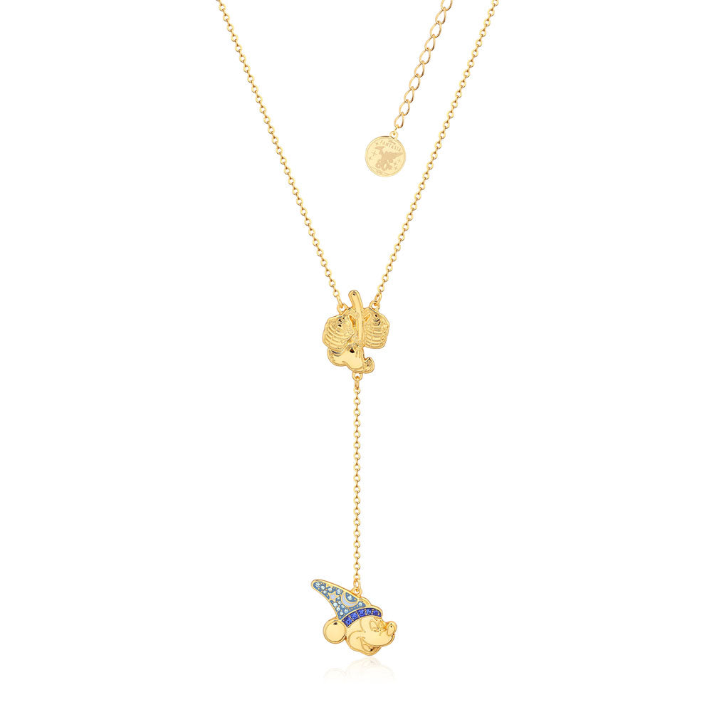 Disney Fantasia Gold Plated Sorcerer's Apprentice Mickey Lariat Pendant on Chain