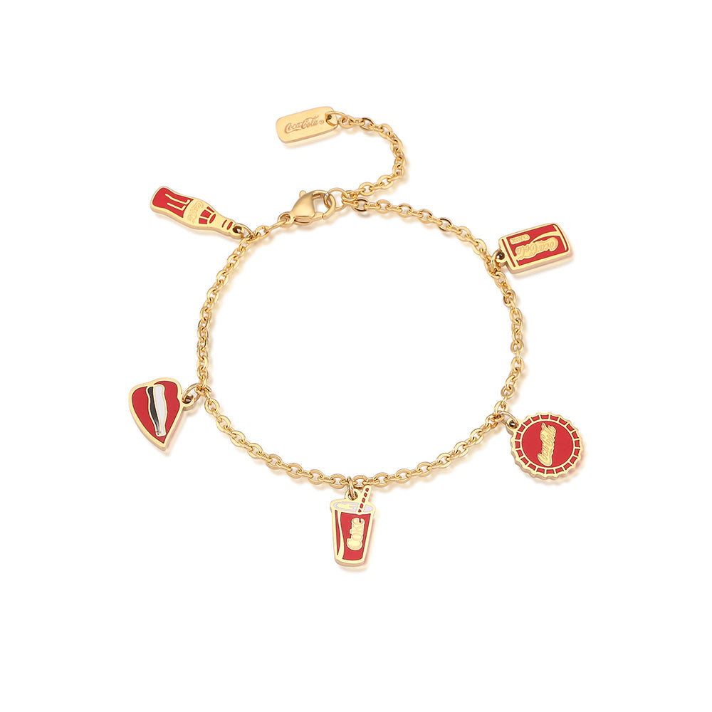 Disney Gold Plated Stainless Steel Coca Cola Charm 16+3cm Diamond Cut Bracelet