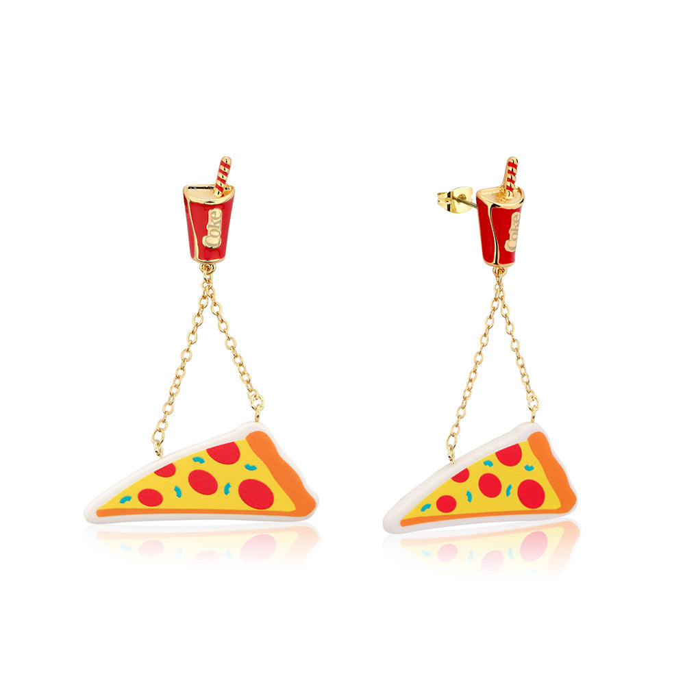 Disney Gold Plated Stainless Steel Coca Cola +Pizza Drop Earring