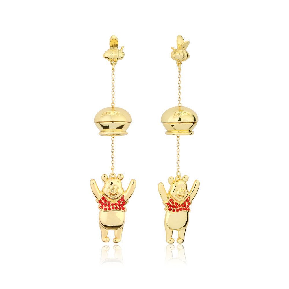 Disney Gold Plated Winnie The Pooh Hunny Pot 80mm Drop Earrings