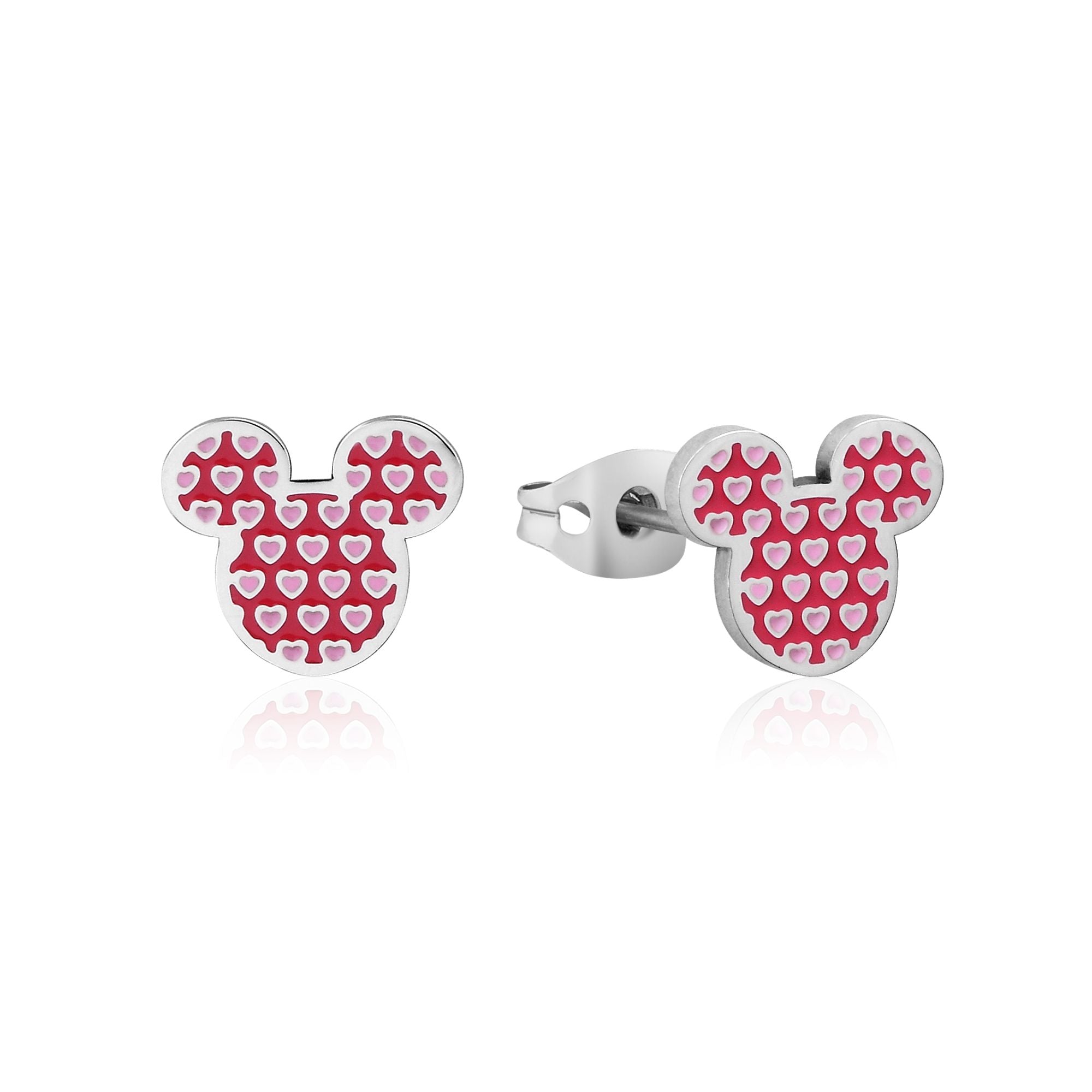 DISNEY Stainless Steel 11mm Minnie Mouse Pink Heart Stud Earrings