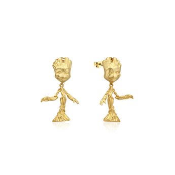 Disney Stainless Steel 14ct Gold Plated Guardians Of The Galaxy Groot Drop Earrings
