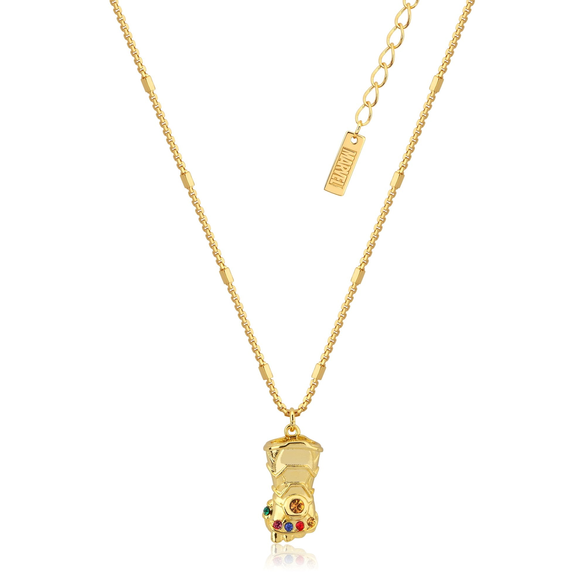 Disney Stainless Steel 14ct Gold Plated Infinity Gauntlet Pendant On 45cm Chain