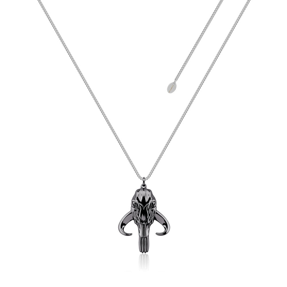Disney Star Wars White Gold &Gunmetal Plated The Mandalorian Pendant On 65cm Chain