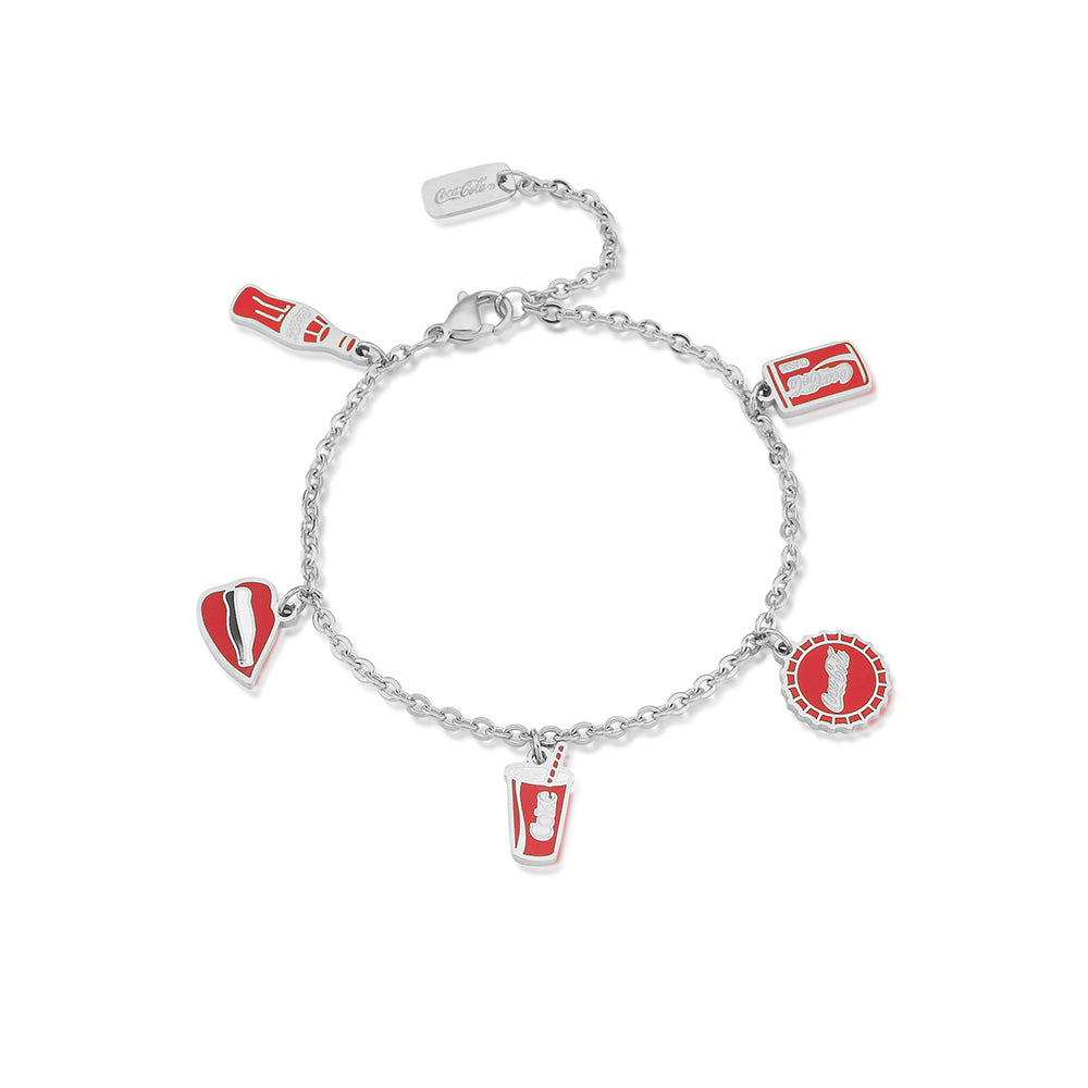 Disney White Gold Plated Stainless Steel Coca Cola Charm 16+3cm DC Bracelet