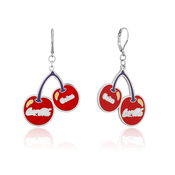 Disney White Gold Plated Stainless Steel Coca cola Cherry Drop Earrings