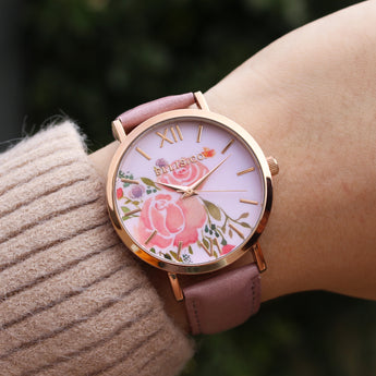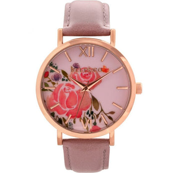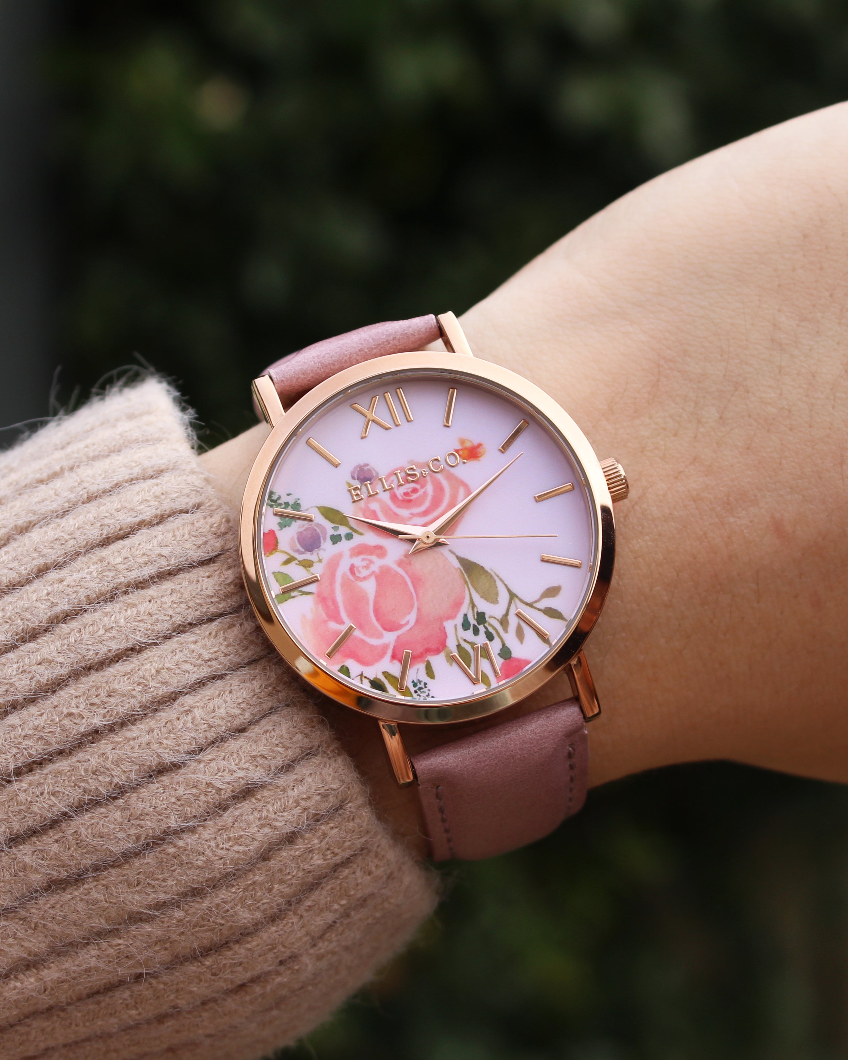 Ellis & Co Holly Floral Dial Rose Leather Band