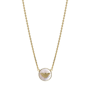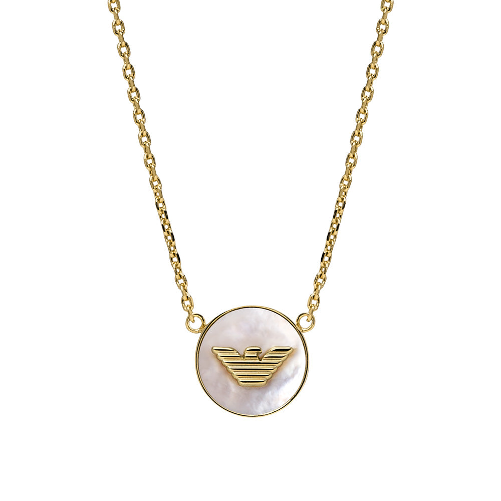 Emporio Armani Gold Plated Brass Mother Of Pearl Eagle Logo Pendant On Chain