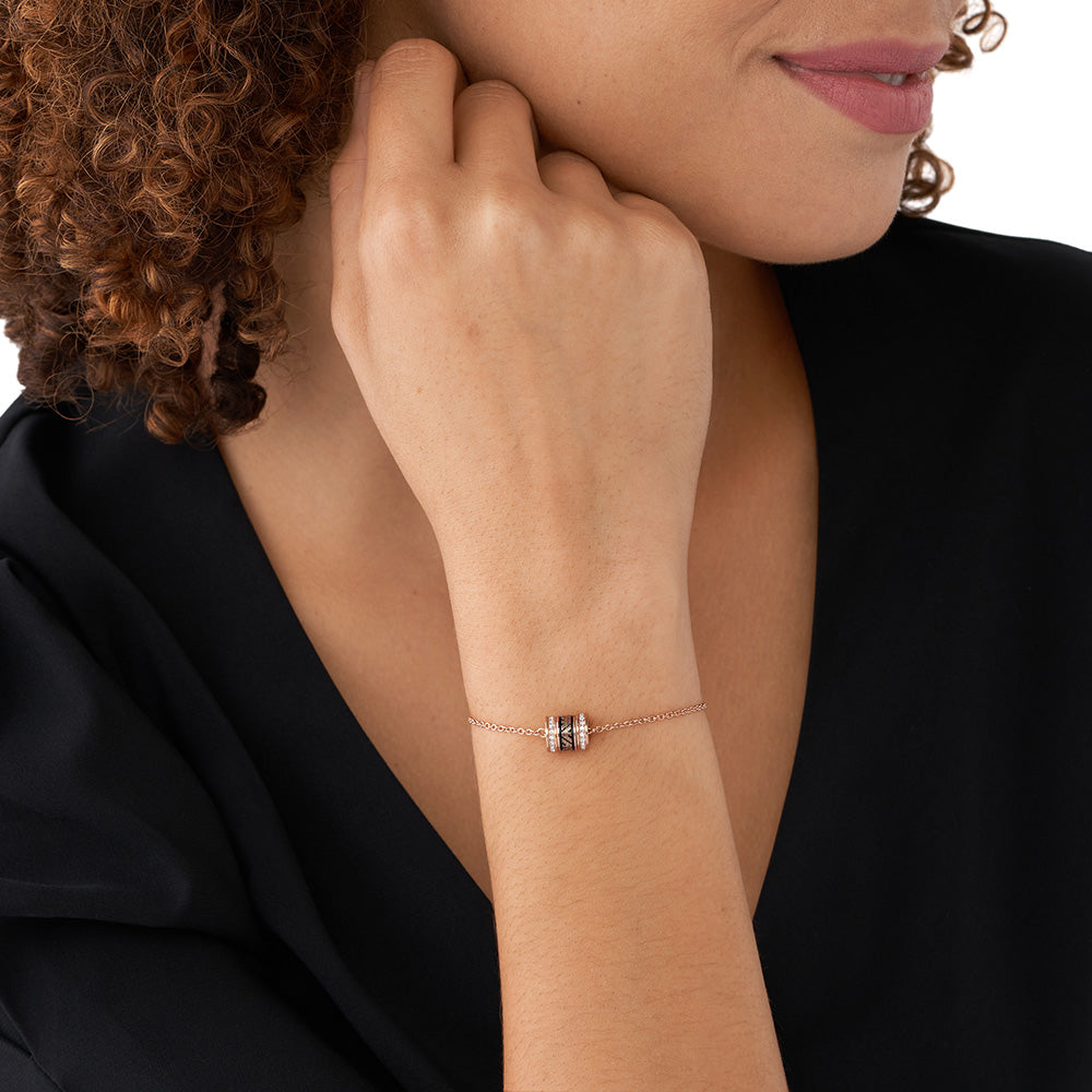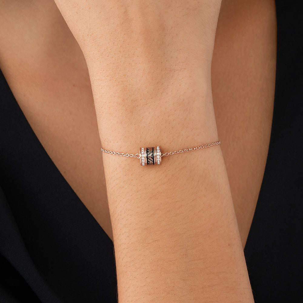 Emporio Armani Rose Gold Plated Stainless Steel Black Lacquer Components Bracelet