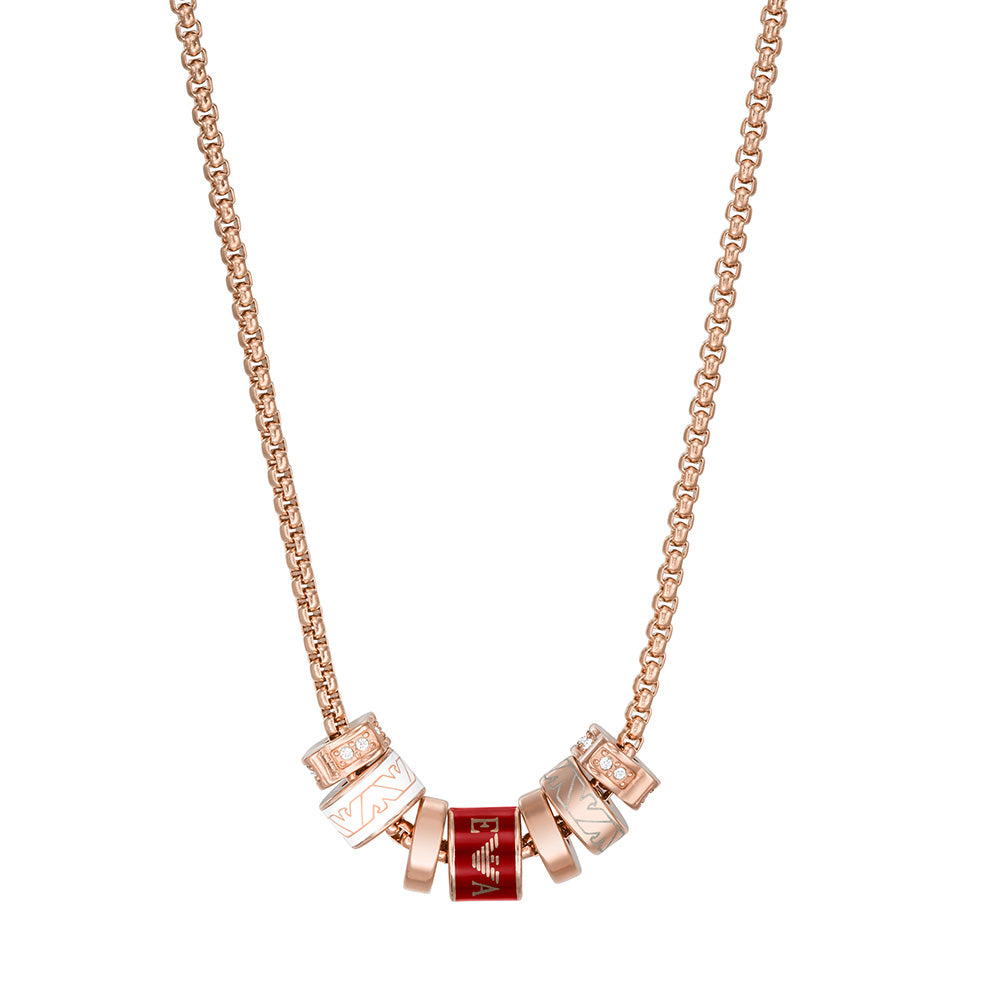 Emporio Armani Rose Gold Plated Stainless Steel Red Lacquer Components Pendant With Chain