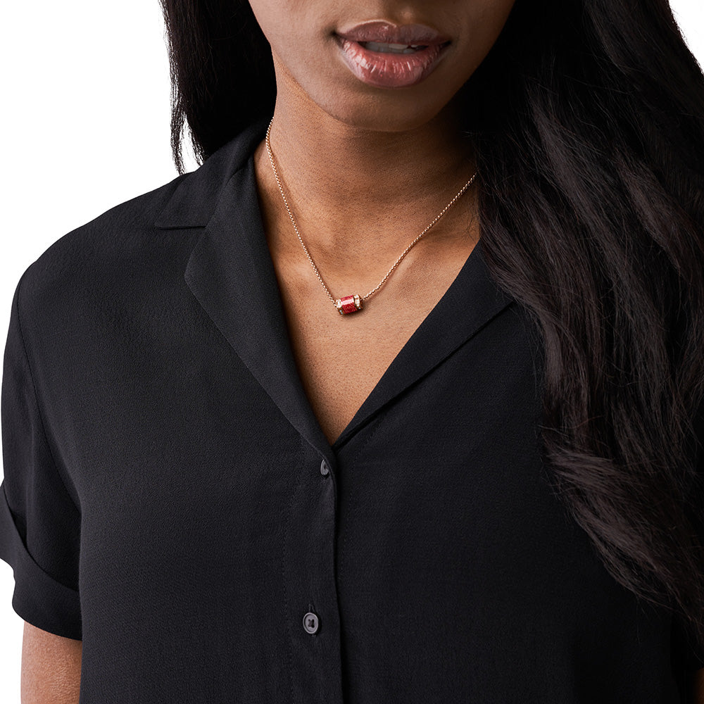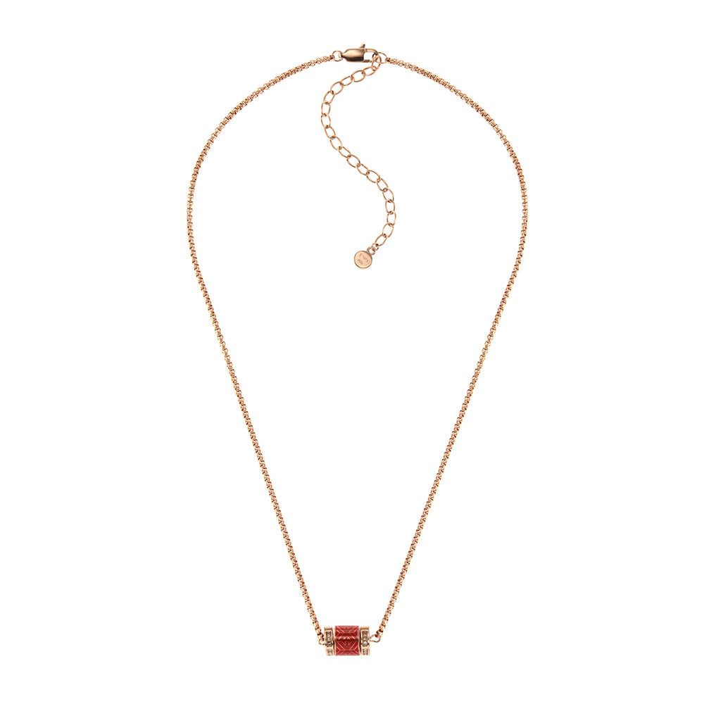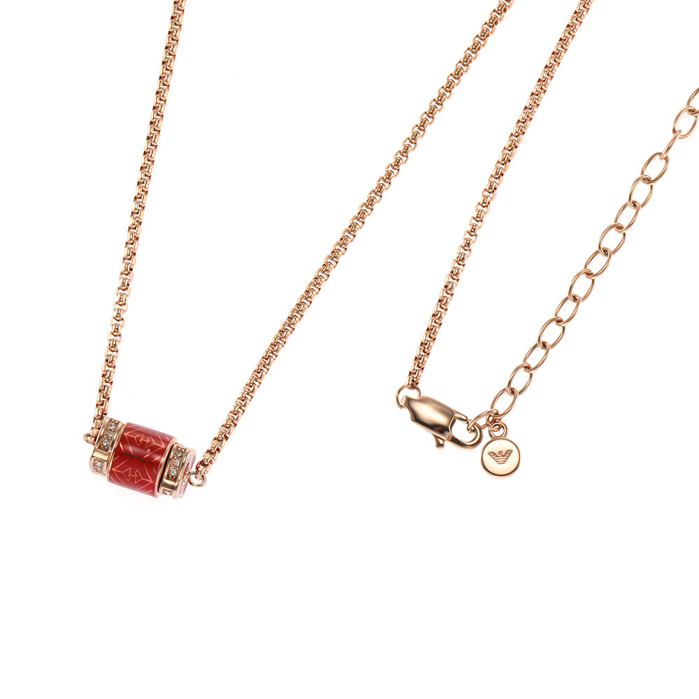 Emporio Armani Rose Gold Plated Stainless Steel Red Lacquer Pendant With Chain