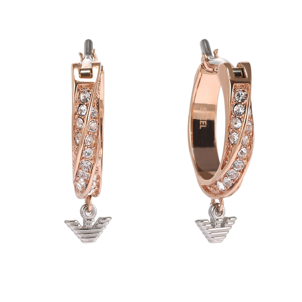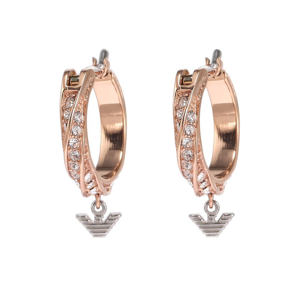 Emporio Armani Rose Gold Plated Stainless Steel Sentimental Logo Hoop Earrings