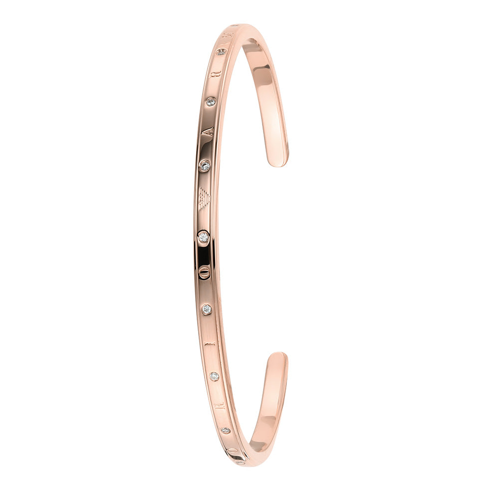 Emporio Armani Rose Gold Plated Sterling Silver CZ Cuff Bangle