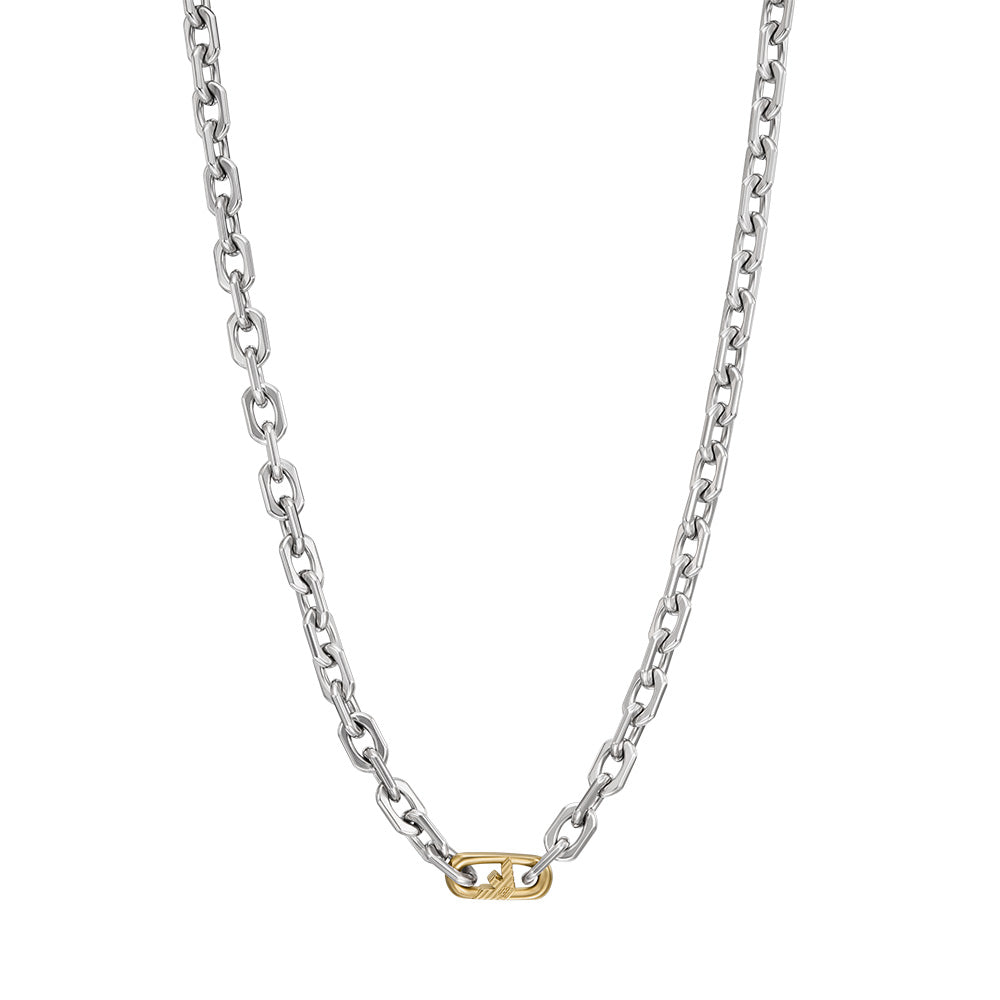Emporio Armani Silver-Plated Stainless-Steel Logo Fancy Curb Chain